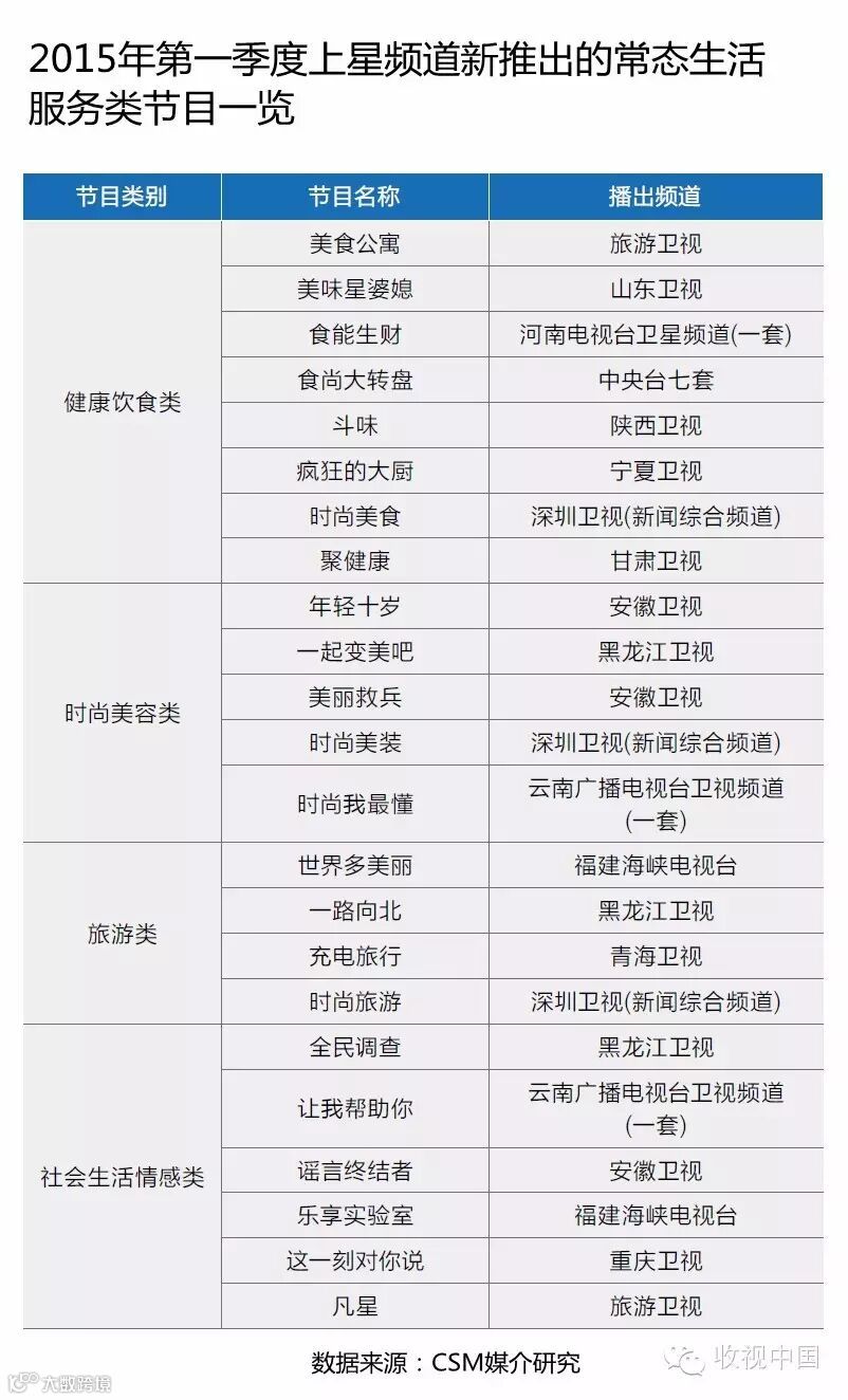生活服务类节目内容涵盖健康饮食、时尚美容、旅游、社会生活及情感等多个领域。