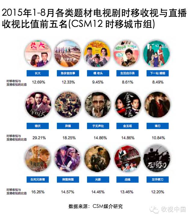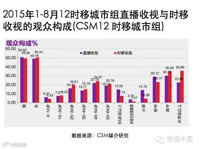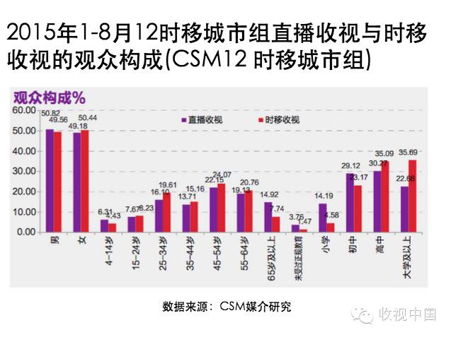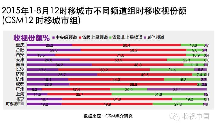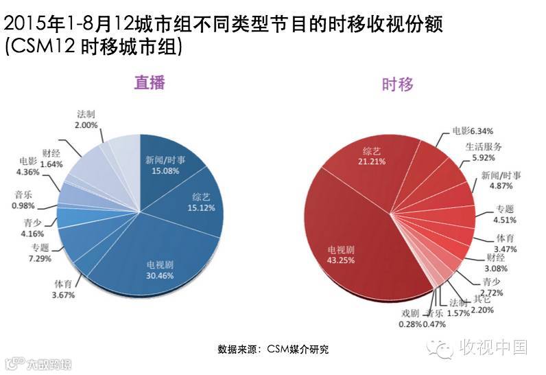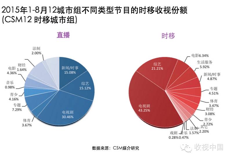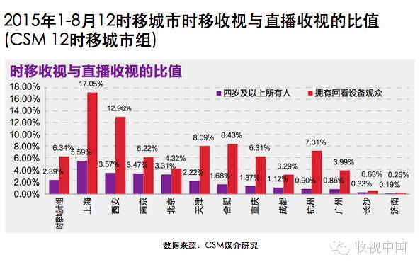 数据来源:CSM媒介研究2015年1月1日至2015年8月31日12个时移收视测量城市数据。
