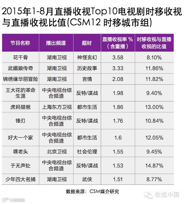 上海东方卫视播出的《虎妈猫爸》,时移收视与直播收视的比值达到13%。