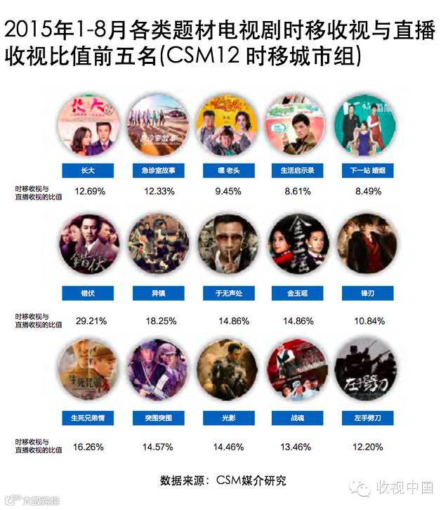 在所有时移收视与直播收视比值超过8%的电视剧中,近代传奇剧时移收视对直播收视的平均提升幅度高达16.90%,位列第一。
