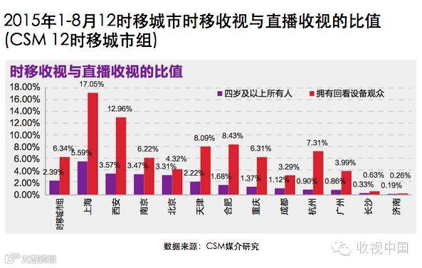 在拥有点播回看设备的观众中,上海观众的时移收视与直播收视的比值高达17.05%。