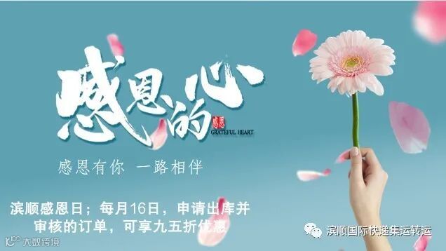 滨顺国际快递集运转运自2021年4月开始,我司将于每月的16日定为;“滨顺感恩会员日”,16日当天09;00--20;00提交订单并审核的,统一九五折,所有渠道,可跟其它活动叠加。