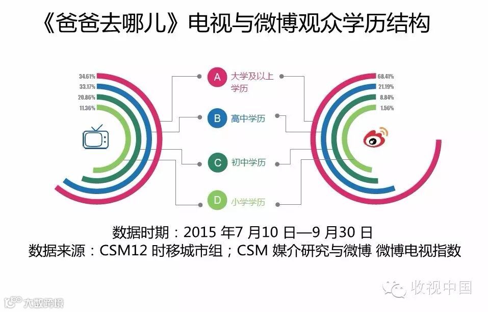 报告教育程度分析只针对小学及以上电视观众及微博用户。