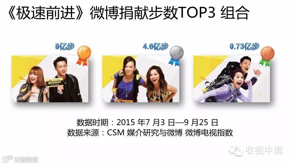 全季完结后统计出冠军韩庚&吴昕组获得网友支持的步数超过8亿步,而邓紫棋&张芸京、杨千嬅&丁子高也在活动中分别获得亚军和季军。