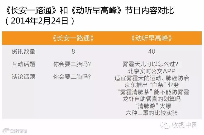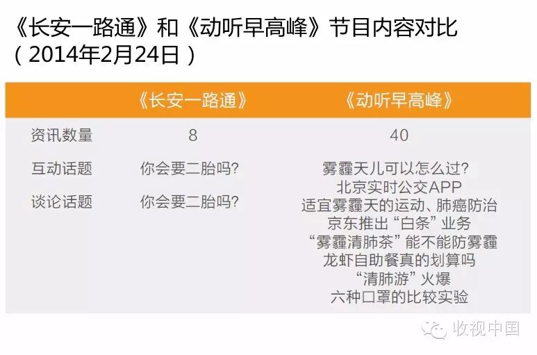 早晚高峰节目比较: