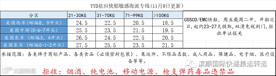 5.YYD盐田快船敏感海派:美国敏感货大货经济船运,不急的大货优选。