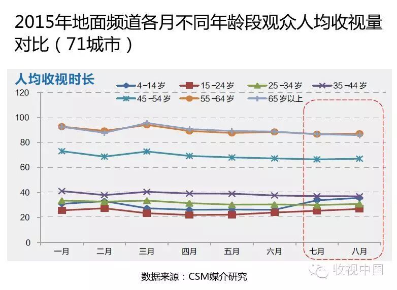 CSM媒介研究在71大中城市收视调查数据显示,暑期具有鲜明的季节性收视特征,和常态时期相比,暑期电视受众在收看时长方面和受众结构方面都有一些明显的变化。