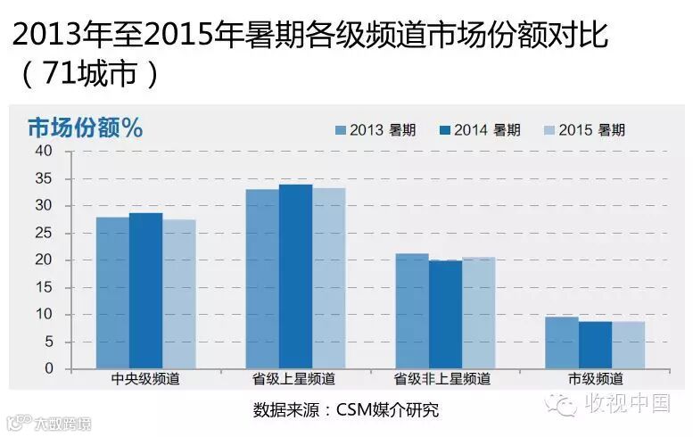 今年暑期,中央级频道市场份额较前两年同期均有较明显的下降。