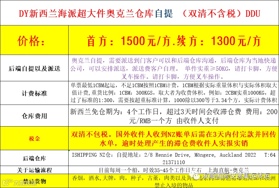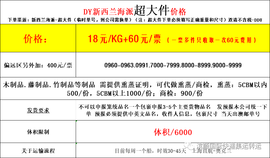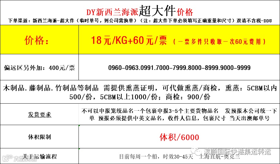 5.新西兰海派大货,按方计算价格表,大货超划算。