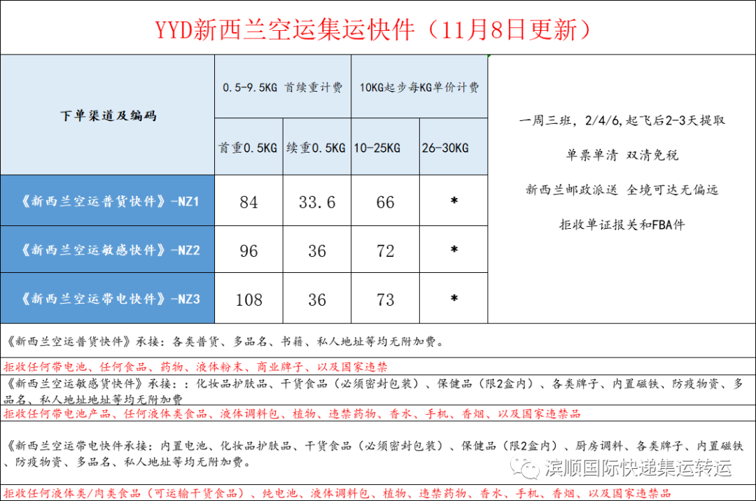 1.新西兰空运集运:时效快,可接各类杂货。