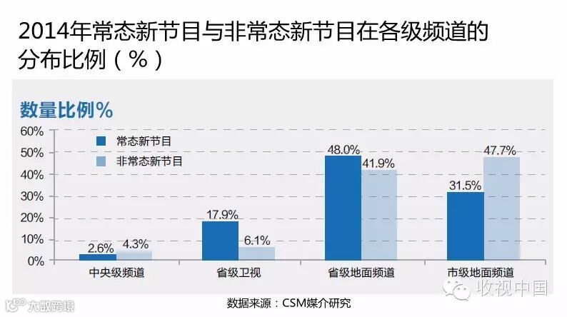 城市台频道的电视节目创新也比较活跃,其常态新节目和非常态新节目分别占所有频道同类新节目总量的31.5%和47.7%。