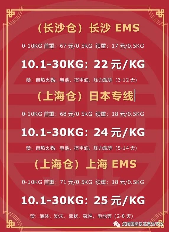 长沙EMS降价啦,22元每公斤,中国到日本