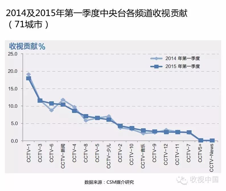 与2014年同期相比,第一位与第二位收视贡献明显增加,第三至五位差距不大,第六至十七位多数呈现出不同程度的下滑。