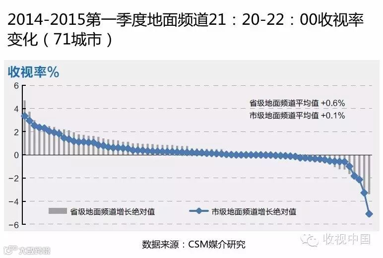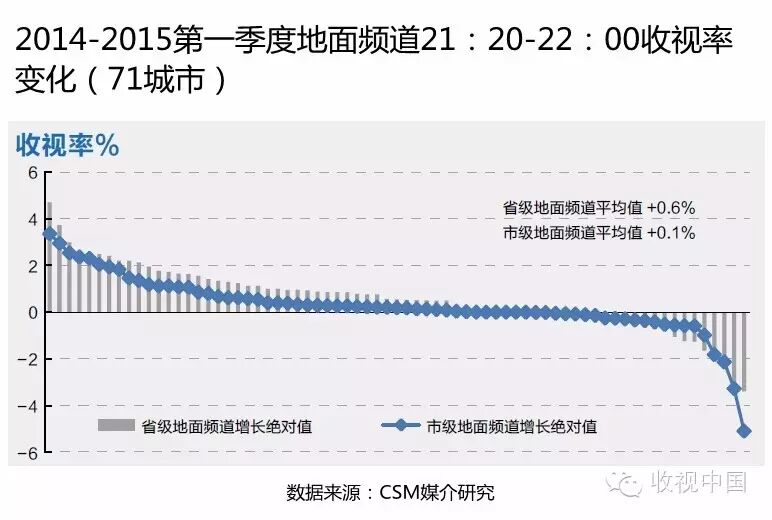 市级地面频道组收视率增幅最高的城市增长约3.4个百分点,下滑最为明显的城市下滑了5.1个百分点。