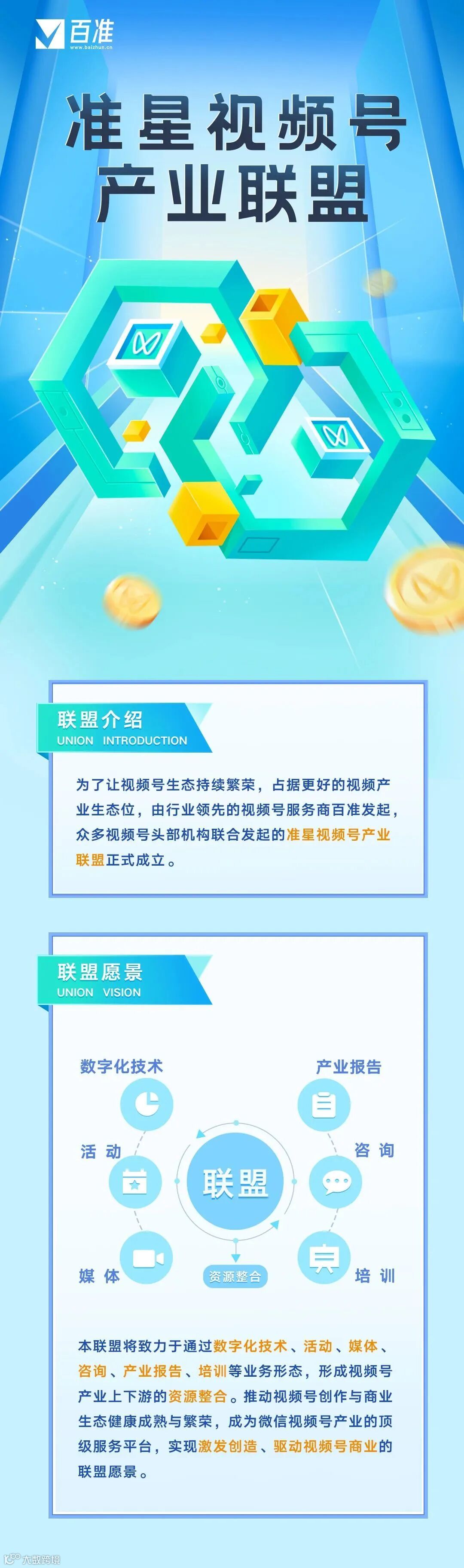 视频号经过近三年的发展,目前已在产品形态、社区氛围及平台生态上趋向成熟。为了生态持续繁荣,促进行业信息同步、资源共享和上下游产业协同,百准联合众多头部机构发起“准星视频号产业联盟”。