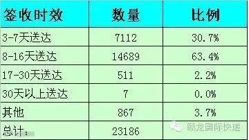 2、E邮宝拥用高效的时效和签收率,时效一般在:7-15天,签收率高达:95%左右,以下是颐龙统计一个帐号15天(6月1日至6月15日)的转运情况: