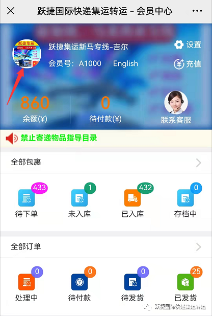感谢所有顾客对跃捷国际集运的支持!2021年6月1日换系统后,如果您第一次登录系统提示需要 用户绑定 请联系我们客服小捷微信:13160890021。如果登录后会员头像显示灰色,说明没有绑定成功,请在会员中心最下方“全部退出” 重新绑定一次,绑定成功后会有头像会是你的微信头像。
