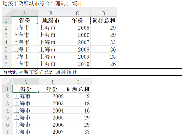 在省级政府城市综合治理注意力词频分析中,指标为省份-年份-词频总和(含所有关键词词频)。