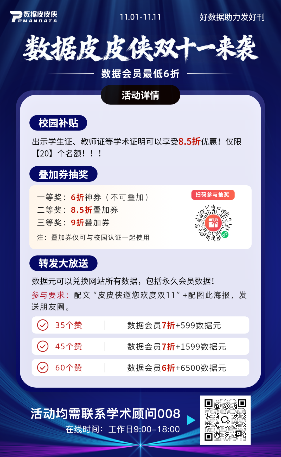 未来,数据皮皮侠将在深耕于经管领域的基础上向其他学科迈进,让数据皮皮侠成为万千学者爱用、好用、必用的大型数据库!!!