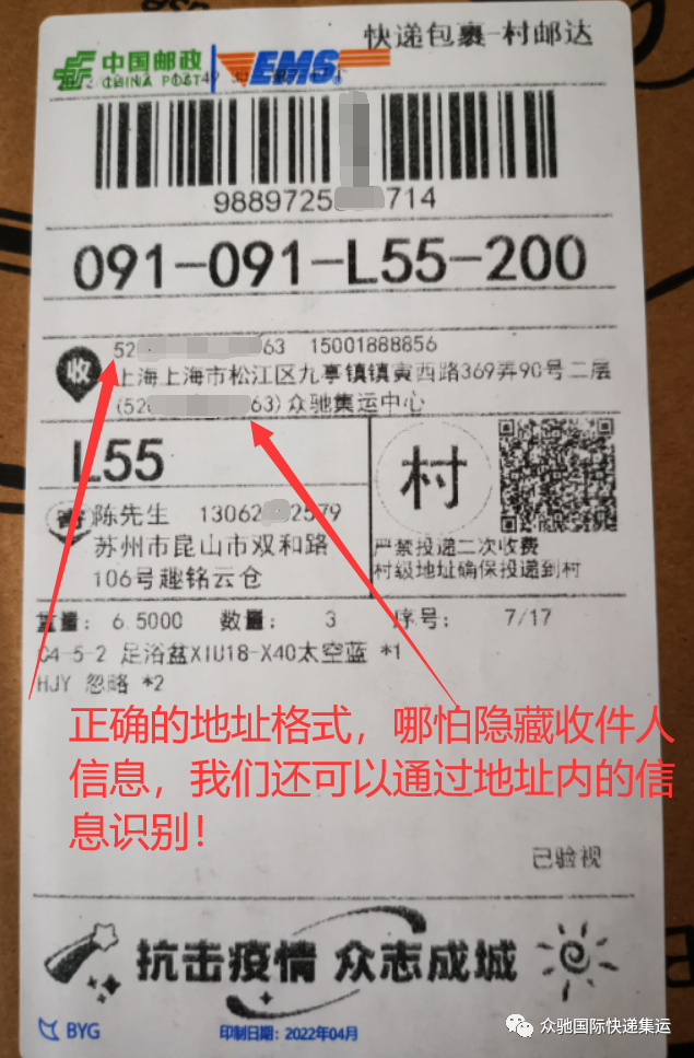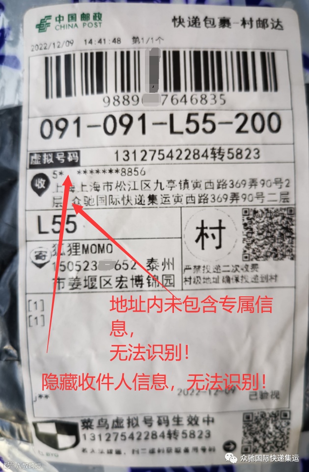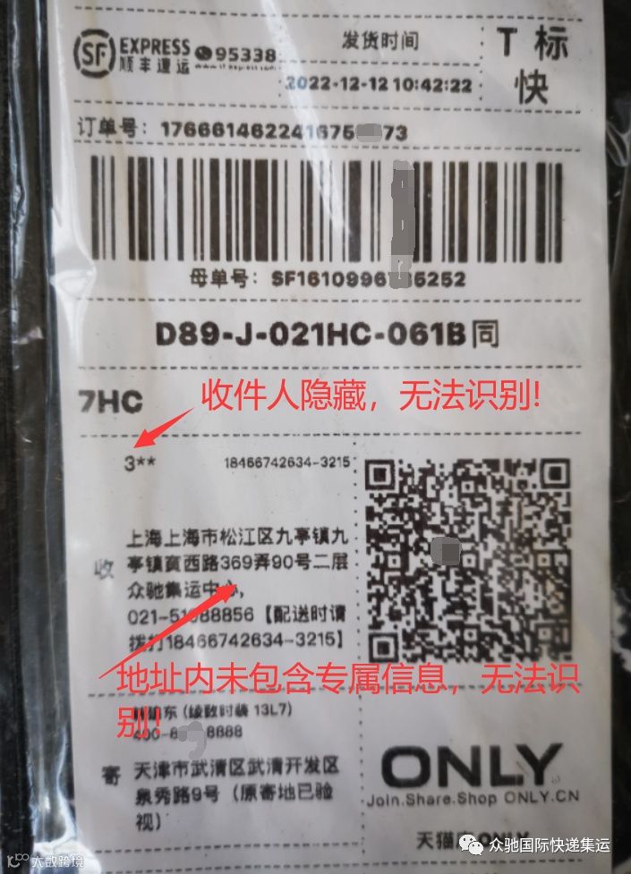 收到正确格式的包裹,就是隐藏收件人信息,我们还是能通过地址内的专属信息识别出来,并匹配到您的名下: