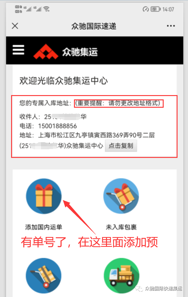 1、查看、核对您的专属地址(尤其地址内的专属信息,极其重要!);