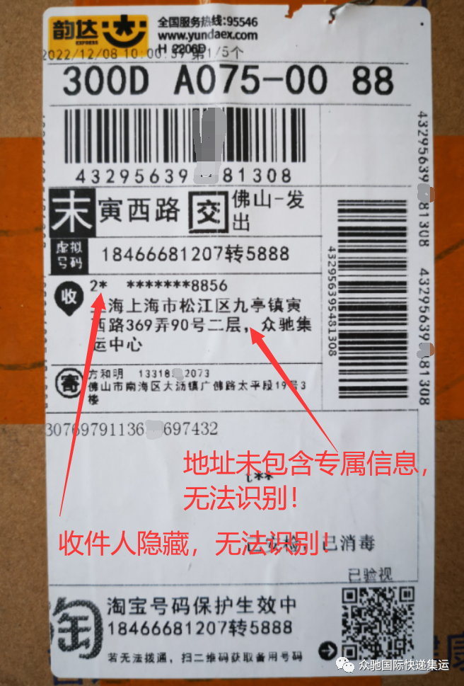 2、韵达面单 隐藏收件人信息,地址内未包含专属信息无法识别!