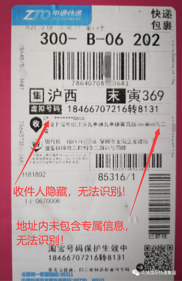 1、中通面单 隐藏收件人信息,地址内未包含专属信息无法识别!