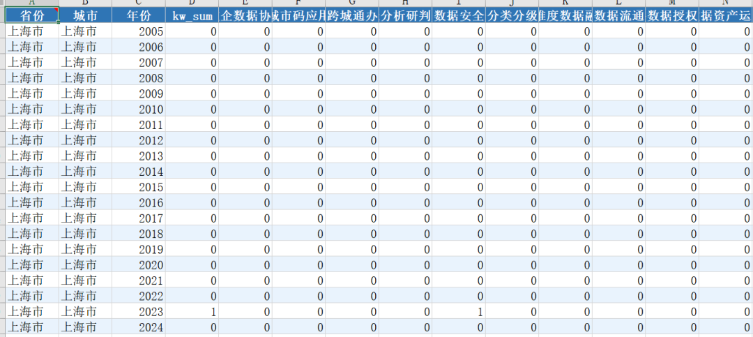 地级市数据要素与城市治理文本分析词频数据 2005-2025