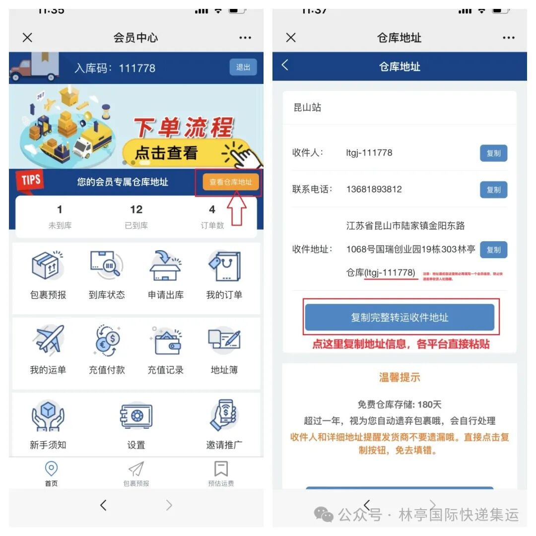 点击【查看仓库地址】获取我司仓库地址,直接复制粘贴到购买商品网站平台填写快递地址即可。