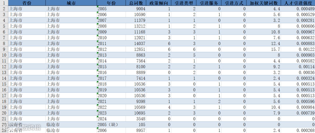 城市人才引进强度(2005-2024) 数据皮皮侠