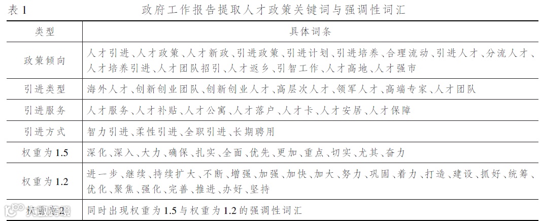 近年来,地方政府相继出台并实施人才引进政策,依托人才集聚推动区域劳动力要素合理配置。由于政府工作报告从编撰到公布具有严格的程序,其内含的政府决策信息显著干预了城市未来一年具体的政策与战略倾向。因此,依据政府工作报告提取关于人才引进的相关词汇能够侧面表征地方政府执行人才引进政策的强度。