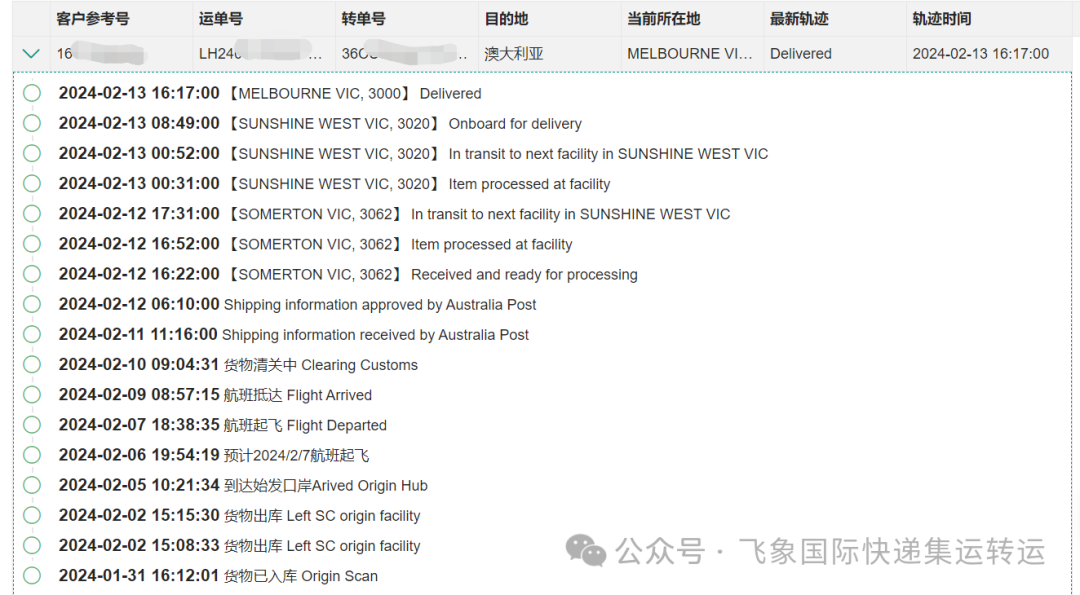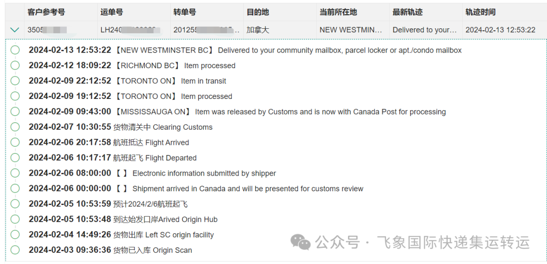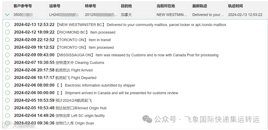 飞象国际快递集运转运近期签收时效供参考~~