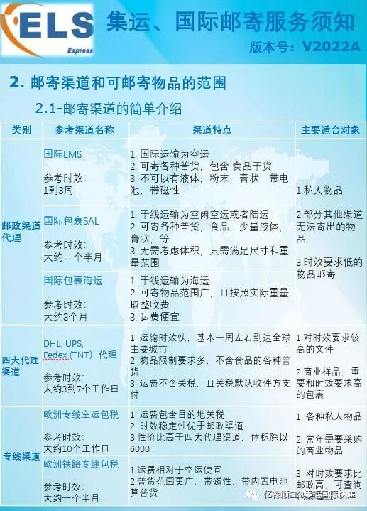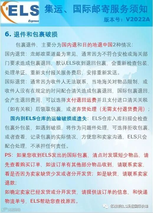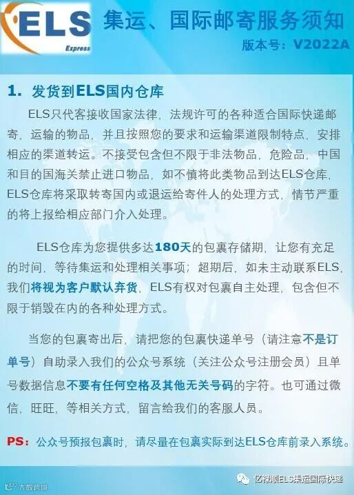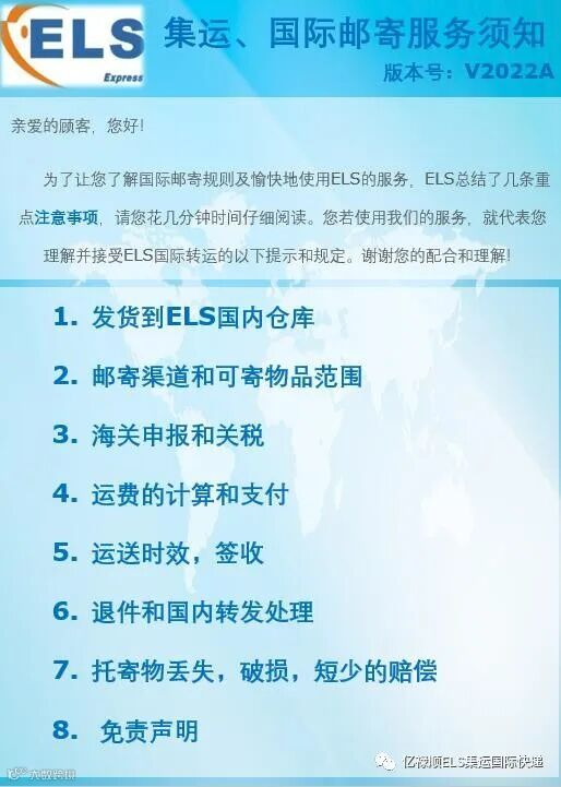 亿禄顺ELS集运国际快递服务须知内容已更新,进一步细化描述了相关服务条款,敬请阅读!