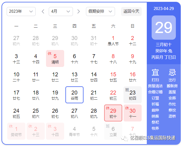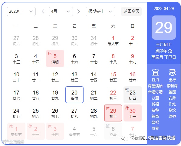 根据国家公共假规定,结合ELS集运实际情况,ELS仓库2023年五一假期安排如下: