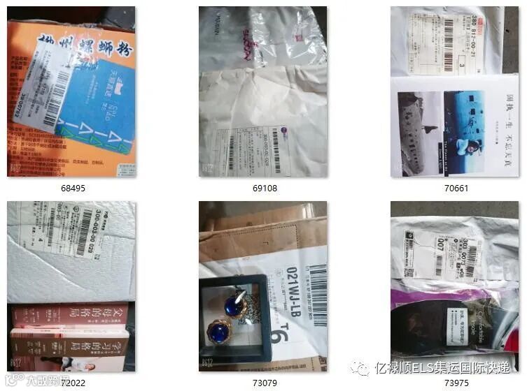 亿禄顺ELS集运国际快递 由于包裹到达仓库,信息不全,我们无法找到主人,特公布相应照片,请大家认领。如照片发现您的疑似物品,请联系我们的工作人员,包裹照片下部的5位数字代码+您购买的订单信息,或者快递完整单号,方便我们进一步确认,归类到您的名下给您包裹物品。