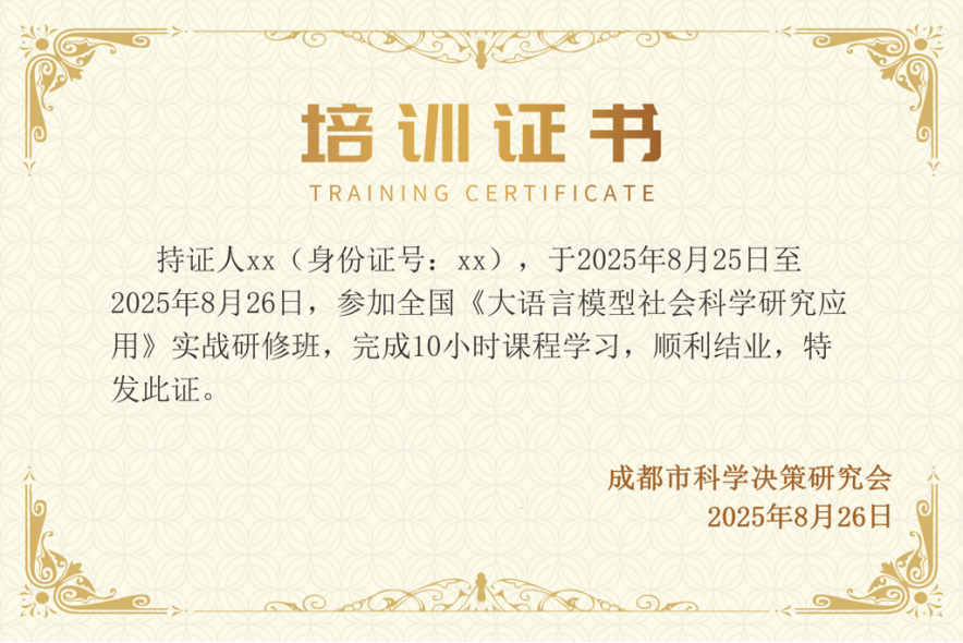 随着"数智时代"的加速到来,频率高、跨度大、范围广、多模态、规模大的经济社会运行数据得以被储存、采集和挖掘,而以ChatGPT、DeepSeek等大语言模型(LLM)为代表的AI工具的不断涌现与迭代,再次掀起社会科学研究范式革命。大语言模型已成为高校师生质性研究、定量研究、教育教学、学习成长的强力助手。成都市科学决策研究会特举办《“大语言模型社会科学研究应用”实战研修班》,详见课程通知文件通知 | 成都市科学决策研究会关于举办“大语言模型社会科学研究应用”实战研修班的通知。