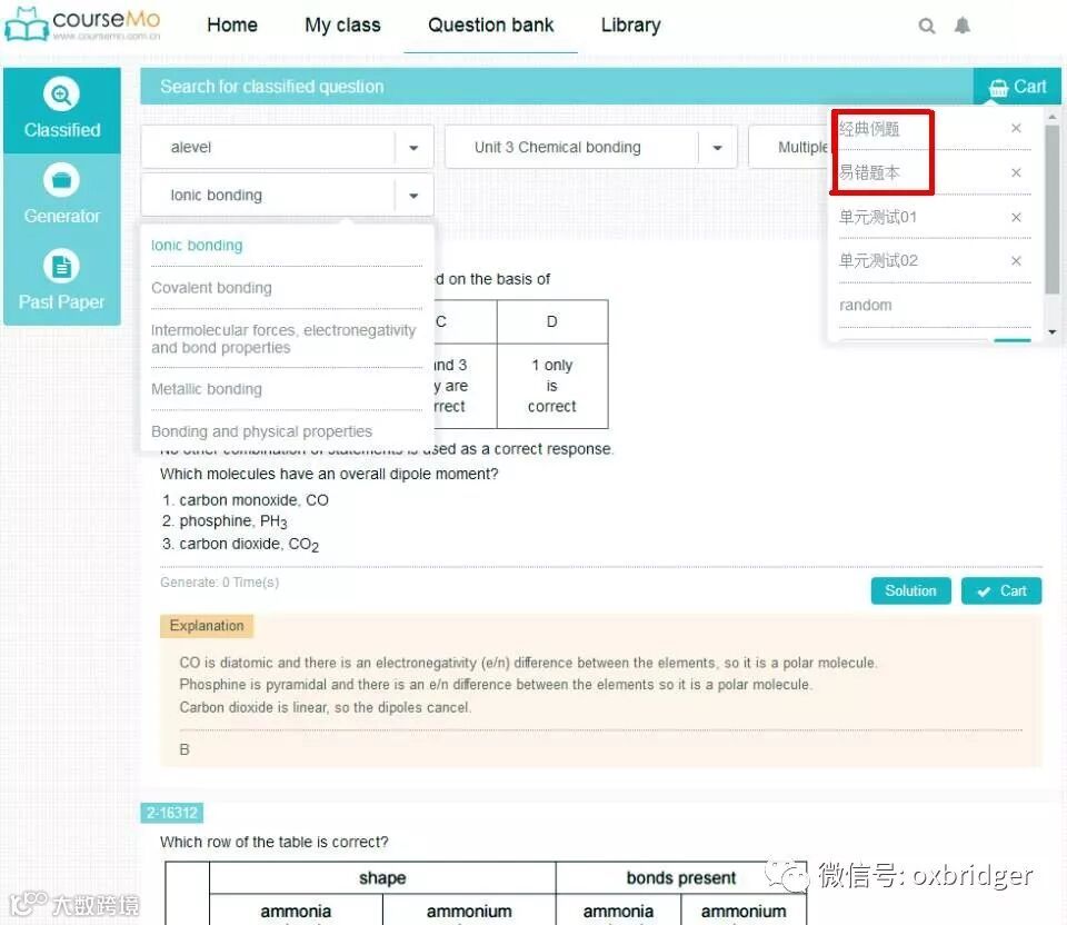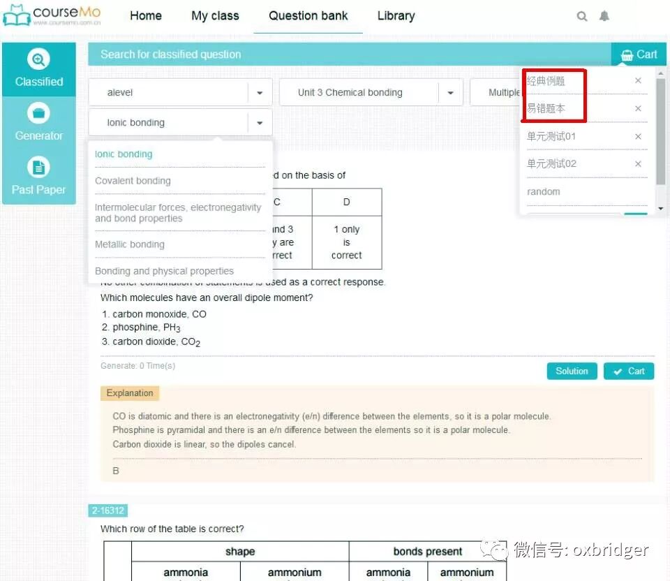 (courseMo课程中心里,按学科、章节、题型、具体知识点创设的题库平台)