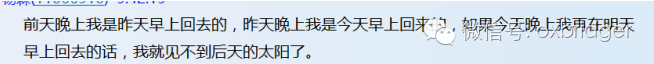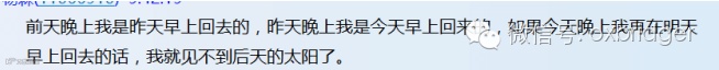 (前天晚上我是昨天早上回去的,昨天晚上我是今天早上回来的,如果今天晚上我再在明天早上回去的话,我就见不到后天的太阳了。)