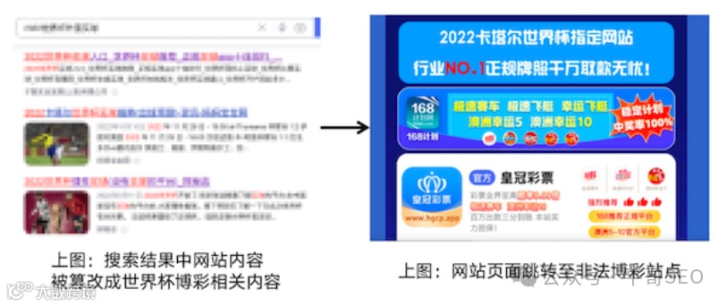网站被黑,通常表现为网站中出现大量非本网站发布的类似菠菜内容,或网站页面直接跳转到菠菜页面。