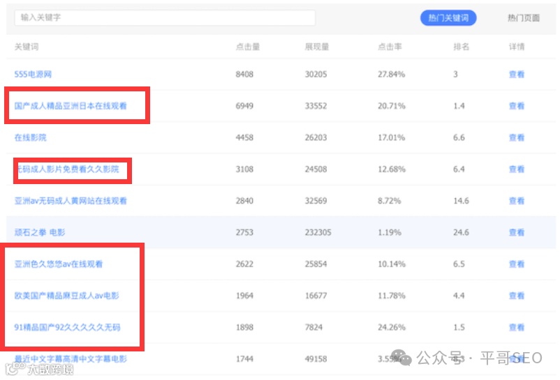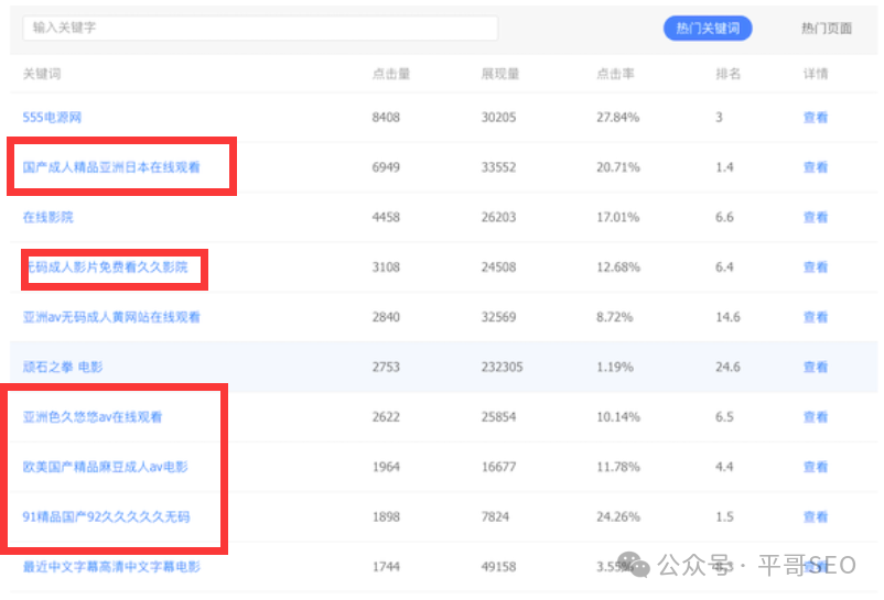 关注搜索资源平台工具【索引量】、【流量与关键词】,是否存在数据骤增或骤降情况,同时通过【流量与关键词】- 热门关键词/热门页面分析关键词和链接,是否涉及博彩或色情;