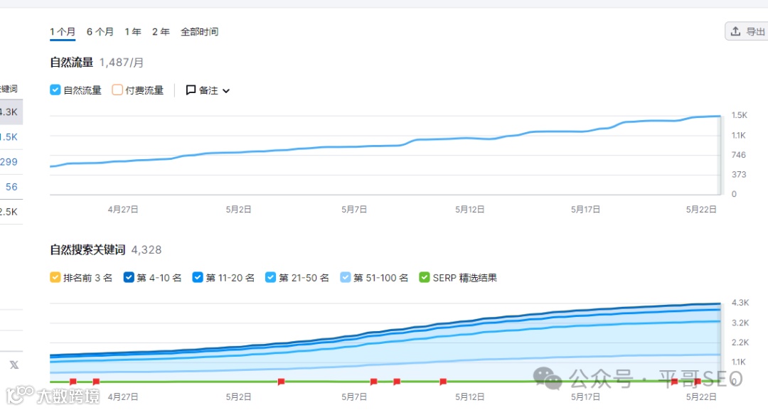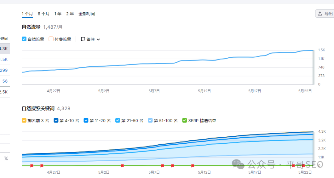 平哥SEO优化B2B行业的案例展示,由于行业的竞对比较多,平哥SEO展现最近一个月的优化结果: