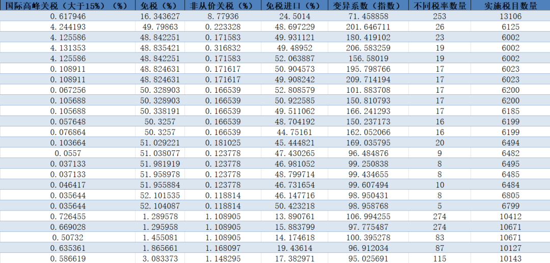 适用从价税或从价税等值(AVE)超过15%的HS六位子目占比。若某HS六位子目中仅部分商品适用此类关税,则按比例计算该子目的贡献度。