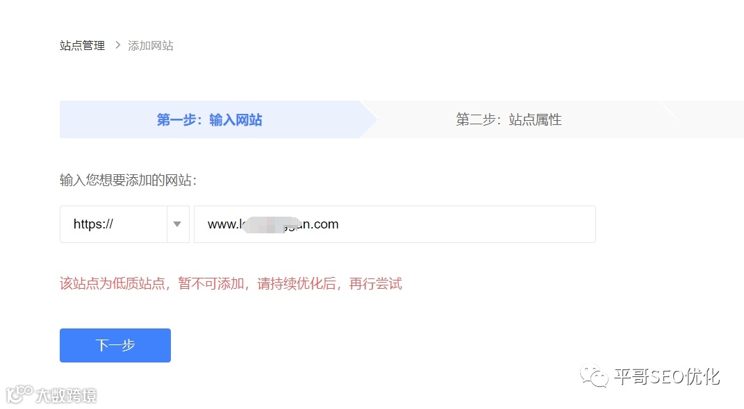 大家买域名的时候一定要注意了,不管新老域名,都尽量先在百度站长平台添加一下是否可以添加成功才购买,不成功的话就是多年建站的老域名也别买。(如果有划为低质量站点,补救方法可以看:百度提示为低质量的网站还能正常收录么?)