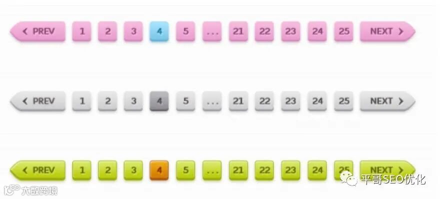 如果产品数再多,甚至可以把翻页做成两排: 1 , 2, 3,4,5, 6, 7, 8, 9,10 20, 30,40,50,60,70, 80,90,100如上面所示两排翻页结构,2000个产品多一次点击就可以全部达到。页面可以列出多少翻页链接及链接之间的步长,SEO可以根据产品数量和网站权重调节。