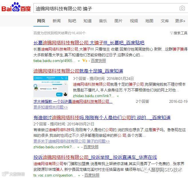 所以靠自己的网站做网络危机公关不是一个有效的方法。动用公关部门,联系论坛、博客删帖也不一定能达到效果。能联系几十个大的论坛删帖,但很难联系几千、几万个转载的小论坛,删不胜删。(比如:下面如图百度上找的案例,很多地方说这公司是骗子公司,主要是公司的问题,不然不会有这么多人曝光。)