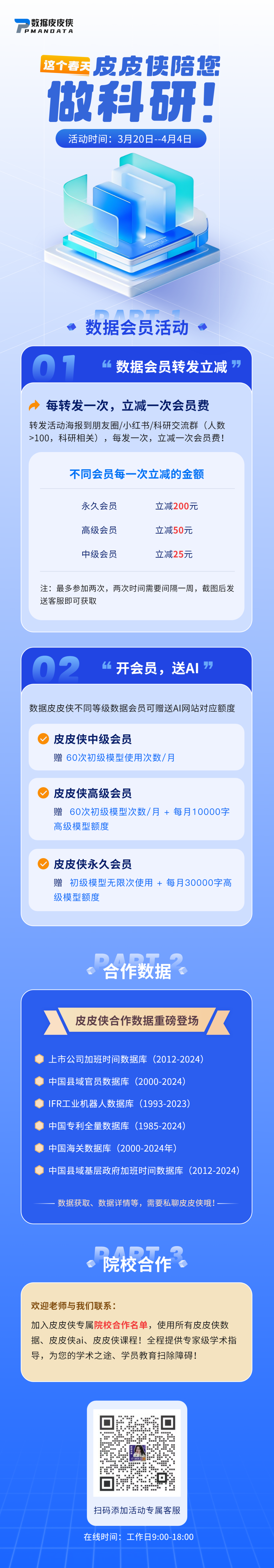 我们积极响应国家号召,关注时政、学术前沿,致力于为大家提供最新、最全的高质量质数据!