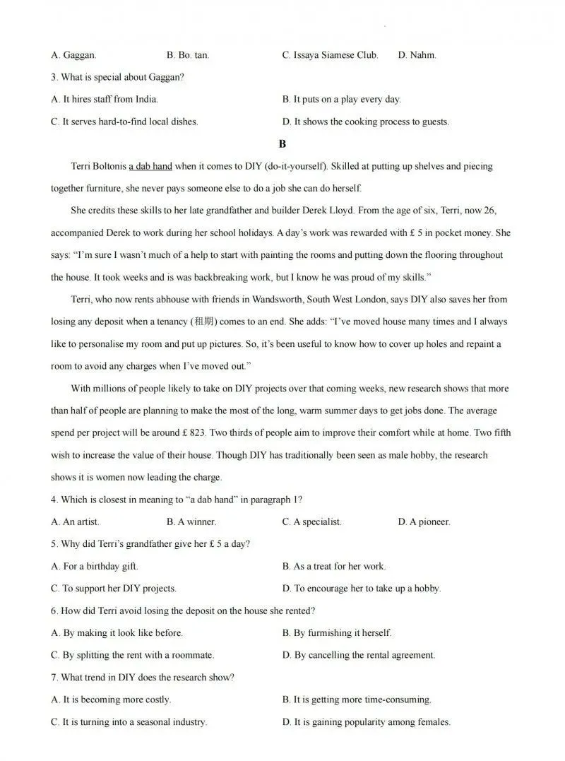阅读下列短文,从每题所给的A、B、C和D四个选项中,选出最佳选项。