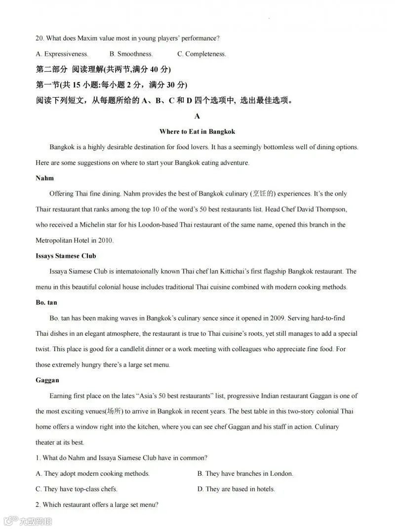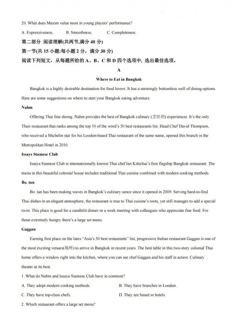 第二部分 阅读理解(共两节,满分40 分)