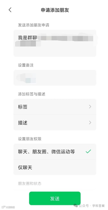 选择 【添加到通讯录】,输入验证信息,发送好友请求。