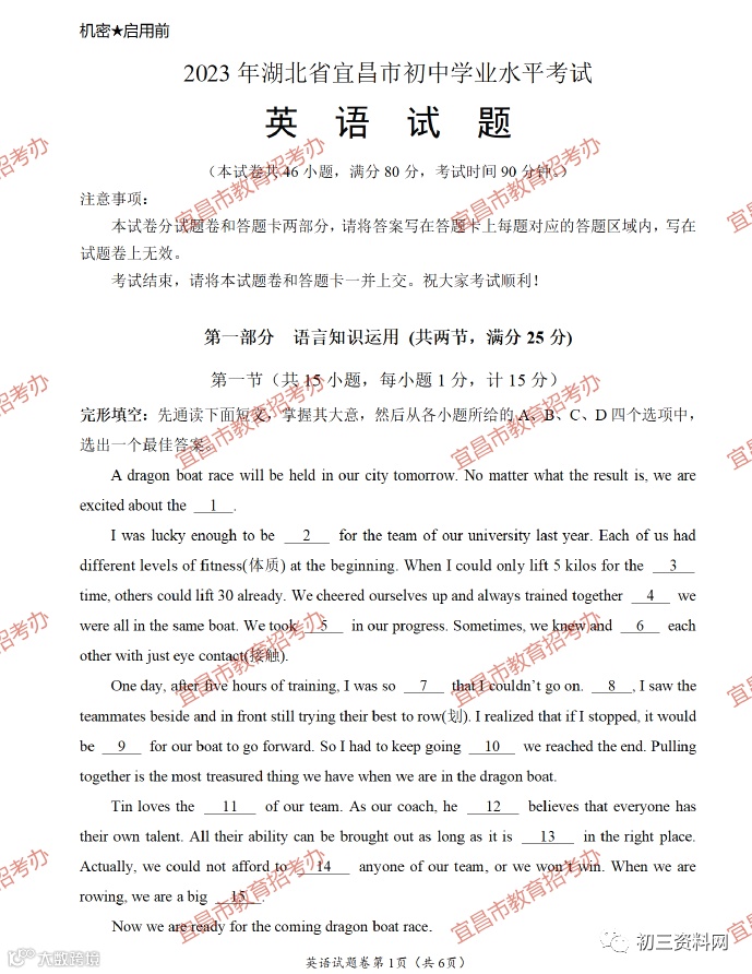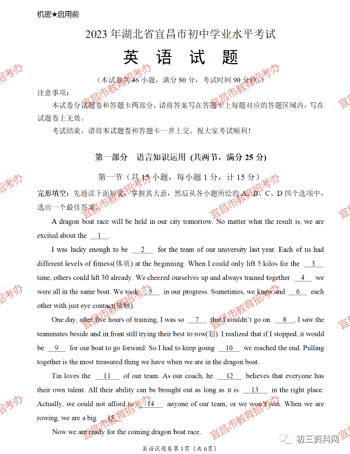 请大家点击下方👇👇公众号卡片,回复关键字:666 就能下载全套中考真题答案!